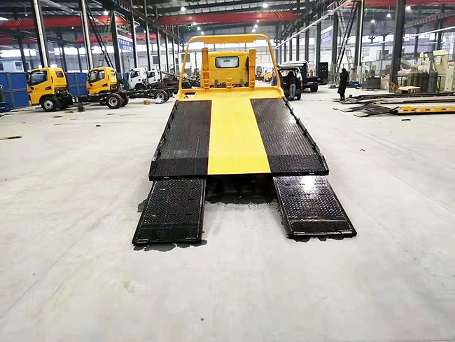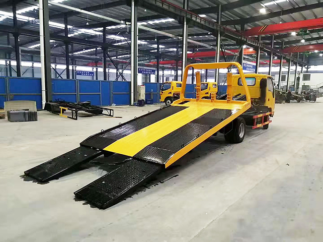 平板采用3PL折疊沖壓式平板,一拖二型,雙側聯動操作裝置。可背3噸,拖3噸,后托臂可托舉2噸。多路閥、平衡閥采用進口液壓件(意大利海德) 后工作燈3只,1個40KN液壓絞盤(25米鋼絲繩),1個工具箱,配2個小車,L型抱胎架1對,6根捆綁帶,托叉1對,托叉座1對。鏈鉤1條。后托舉機構(可拆卸),主板長4.2米。