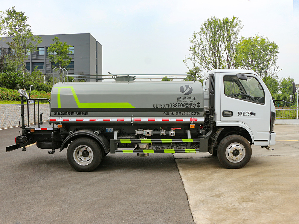 東風福瑞卡 5 方灑水車產品主要技術參數 序號 名稱 型號、規格 1 整車型號 CLT5071GSSEQ6 型灑水車 2 發動機型號 D20TCIF1 3 發動機馬力/功率 云內 126 馬力/93KW 4 發動機排量 1999ML 5 變速箱 萬里揚 5 檔 6 輪胎規格 7.00 鋼絲胎 7 軸距 3308 8 總質量 7360KG 9 整備質量 3220KG 10 額定載質量 4010KG 11 整車尺寸(長×寬×高) 6.15*1.99*2.4 12 罐體容積 5 方 13 燃料種類 柴油 14 排放標準 國六 15 水泵型號 40/50 16 罐體材質 Q235 碳鋼