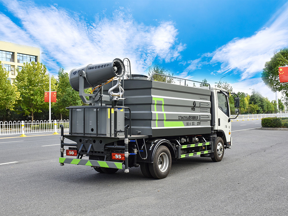 福田藍牌7方抑塵車產品產品配置 1.底盤配置: 福田 H2 駕駛室,發動機全柴 130 馬力,法士特 5 檔箱,7.00R16 鋼絲胎,3360 軸距,中控鎖,電動玻璃,T-BOX(全國通用),5T 后 橋,斷氣剎,ABS2.上裝配置: 1、罐體約為 7 方,可加裝 30 型霧炮 2、邊燈帶電,罐體尾部上方標配 2 個紅色示寬燈, 3、標配前噴為鴨嘴直沖,標配后沖,用戶可根據自己的需求,來調 整對沖位置。 4、花紋防滑平臺,炮筒后蓋為定制型螺栓卡扣, 5、前噴、后沖、后灑、側噴,綠化高炮開關球閥均采用 50 大通經 不銹鋼球閥, 6、新式軸承式水炮,更加耐用, 7、40-50 型水泵, 8、防腐法蘭墊片, 9、鋁制后灑,不易炸開 10、罐體自動焊(美國林肯焊機及電源),拼板自動焊接,封頭環 縫焊接,無氣孔,焊縫美觀。 11、側護網、后保險杠、均為螺栓連接,方便拆卸,維修方便。 12、塑料擋泥板,替代鐵擋泥板,更加輕便,用螺栓連接,方便拆 卸。 13、前部、后部主管連接處為 6 孔圓法蘭,不易沖墊